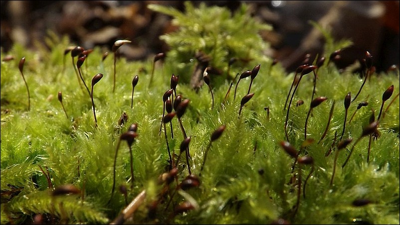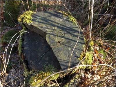 Wspaniale prezentują się podstawy starych dębów odbijające soczystą zielenią od zimowej szaty lasu, co świadczyłoby o dużej wilgotności podłoża ale to niestety tylko mylne złudzenie. Opady deszczu były w ostatnim czasie dość skąpe i w ziemi jest bardzo mało wilgoci. Wystarczy podnieść grubszy fragment drewna pod którym można zauważyć suchy piach. |