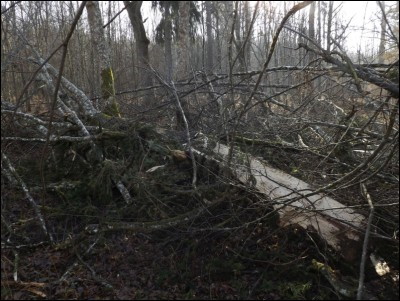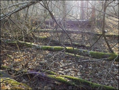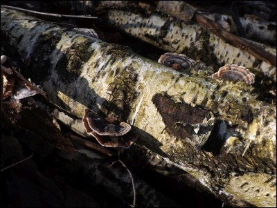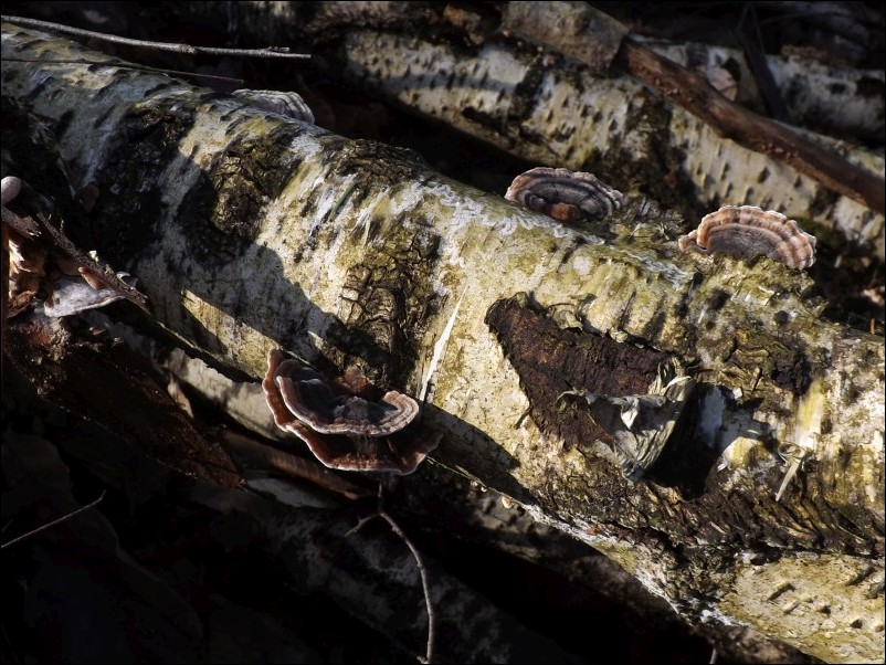 Dno lasu usłane połamanymi konarami drzew co wykorzystują różnego rodzaju grzyby. Między innymi jamczatka gmatwopora (Datronia mollis).