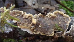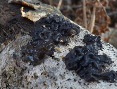 Natomiast dla tego typu substratu oczywiste jest występowanie na nim kisielnicy kędzierzawej (Exidia plana) oraz gatunków z rodzaju powłocznic, zapewne Peniophora polygonia, pospolitej na terenie Puszczy Knyszyńskiej.