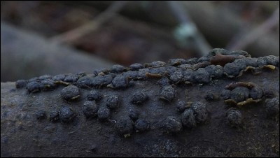 Będąc w tym miejscu nie sposób pominąć substratu grabowego, którego w tym miejscu nie brakuje. Nic interesującego jednak na nim nie spotkałem tym razem ale przedstawię chociaż dwa gatunki które masowo na nim występują. Pierwszy to Melogramma campylosporum a drugi to Hypoxylon howeanum.