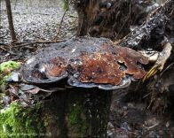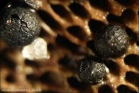 Owocniki na hymenoforze martwej lakownicy spłaszconej