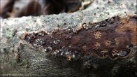 Owocniki na leżącej na ziemi gałęzi olszy (Alnus sp.).
