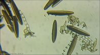 Owocniki na martwych liściach turzycy (gatunek nieznany)