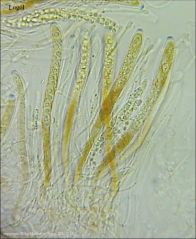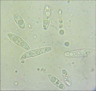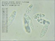 Zarodniki o wymiarach 10-20 x 3-5 µm, bezbarwne, wrzecionowate, gładkie.