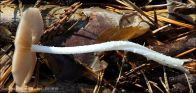 Trzon: o wymiarach 0.5x3-7 cm, pusty w środku, może być równogruby ale zazwyczaj lekko poszerzający się ku podstawie, barwy białej; powierzchnia na całej długości drobno oprószona.