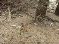 Spora grupka owocników we fragmencie zadrzewienia wybitnie świerkowego.