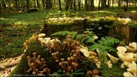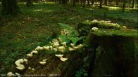 Stary mieszany las puszczański, pniak świerkowy, kilkadziesiąt owocników.