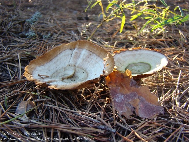 Hymenofor: rurki bardzo krótkie; pory od okrągłych do kanciastych, średnicy około 0.5 mm, początkowo białawe, z wiekiem nabierające barwy żółtobrązowej, rdzawobrązowej lub ciemnobrazowej, zbiegające na trzon.