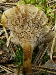 Owocnik: młody w kształcie wąskiego lejka z lekko zaznaczonym, mającym się dopiero rozwinąć kapeluszem (fot. 03-04).