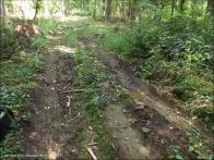 Las mieszany, z rzadka uczęszczana droga leśna; błotnista ziemia.