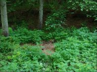 Las mieszany, przydrożny dół wypełniony odpadami z pobliskiego gospodarstwa.
