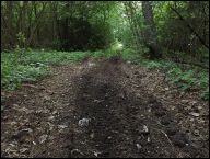 Śródpolne zadrzewienie mieszane, błotnista droga; ziemia zmieszana z trocinami.