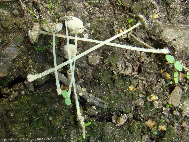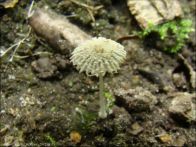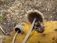 Dwa owocniki na skraju błotnistej koleiny, prawdopodobnie na kawałku drewienka wgniecionego w błoto.