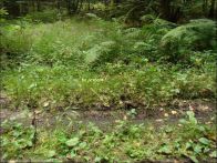 Błotniste przydroże drogi leśnej, podłoże zmieszane z dużą ilością resztek drewna.