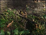 Las mieszany z przewagą iglastych, z rzadka uczęszczana droga; ziemia.