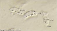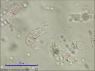 - zarodniki dojrzałe z trzema septami, niezbyt grubymi ale dobrze zaznaczonymi (w przypadku braku zarodników dojrzałych identyfikacja w zasadzie jest niemożliwa).