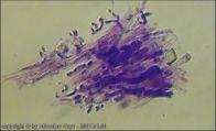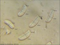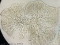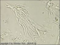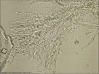 Inaczej są również zbudowane dikariofizy. D. punctiformis posiada septowane (ze sprzążkami), zazwyczaj długie i nie rozwidlone w górnej części. Kilka razy udało mi się w jego przypadku zaobserwować dikariofizy podzielone ale jedynie w dolnej ich części.