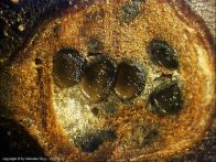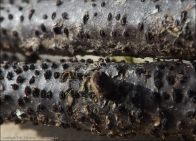 Owocniki na na martwych gałązkach porzeczki (Ribis sp.).