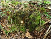 Mocno zbutwiały pniak, niewiadomego pochodzenia, porośnięty mchem.