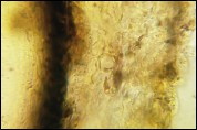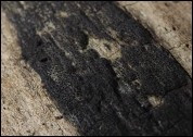 Owocniki na okorownym pniu powalonego jesionu (Fraxinus sp.), w średnim wieku.