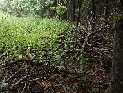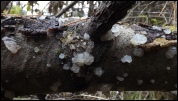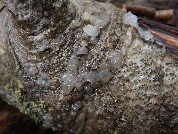Zadrzewienie liściaste. Owocniki masowo na konarach powalonej topoli.