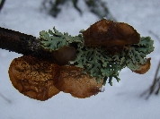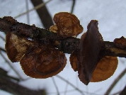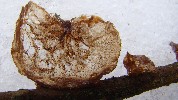 Owocniki ze stanowiska położonego w pobliżu przedstawionego powyżej lecz zdjęcia wykonane w okresie zimowym, owocniki przemarznięte.
