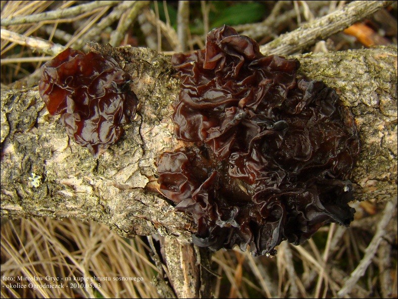 Znalezisko z kwietnia 2012 roku, kloc sosnowy leżący na wilgotnym podłożu, na brzegu jeziora Komosa, nieopodal Ogrodniczek (woj. podlaskie, gm. Supraśl).