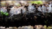 Znacznie łatwiejsza do odnalezienia po dłuższych okresach wilgotnych kiedy to owocniki są bardziej nabrzmiałe i zdecydowanie lepiej widoczne. W okresach suchych gołym okiem ledwie dostrzegalne ze wzgledu na maskujące barwy oraz sposób wyrastania. Często praktycznie w ogóle nie wystające spod pęknięć kory.