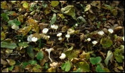 kilka owocników na grubej warstwie ściółki.