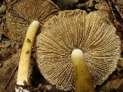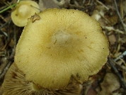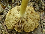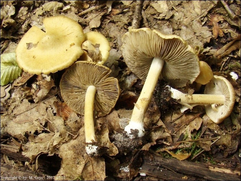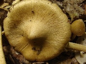 Blaszki: gęste, nieznacznie zatokowato wycięte, znacznie rzadziej prawie wolne, barwy od białawej, poprzez jasnocytrynową do brudnooliwkowej; ostrze nierówne, jaśniejsze.