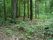 Las z przewagą liściastych (grab, dąb, brzoza), w średnim wieku, ściółka.