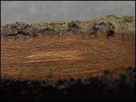 Owocniki na martwej gałązce jesionu (około 1.5 cm. średnicy), pozbawionej kory.