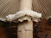 Pierścień: pojedynczy, duży, częściowo przesuwalny, spód pierścienia gładki, barwy brązowawej (szczególnie dobrze widoczne na fot. 10), powierzchnia boczna i górna barwy białej, kłaczkowata.