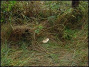 Bór sosnowy, przydroże; ziemia, wśród traw.
