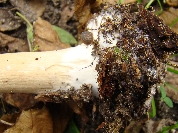 Jeden owocnik na resztkach kompostowych przysypanych opadającym igliwiem, siedlisko nieco nietypowe jak i wygląd owocników.