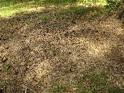 Kilkanaście owocników na poboczu drogi leśnej, na rozjeżdżonych końskich odchodach.