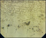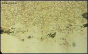 Gładkość zarodników oraz występowanie na węglu bardziej przemawiałyby za P. tenacella, jednak wyraźna warstwa żelu na zewnętrzej powierzchni przybliża bardziej tę kolekcję do P. exogelatinosa?