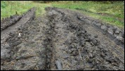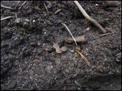 Trzy owocniki na błotnistej ziemi zmieszanej z dużą ilością resztek drewna.