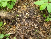 Kilka owocników na niewielkiej wywróconej karpie oraz obok niej, na ziemi.