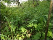 Zadrzewienie liściaste na skraju lasu, teren wilgotny.