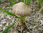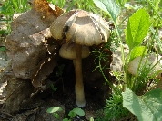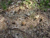 Ziemia, wśród zielska, na skraju kupy trocin.