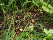 Bór sosnowy, trawiaste przydroże; ziemia, wśród traw.