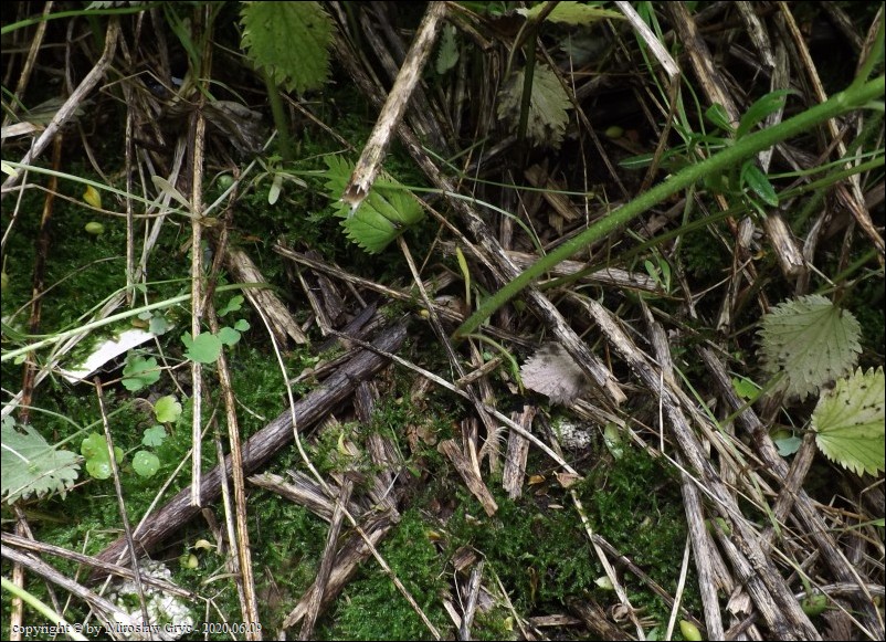 Owocniki na grubej warstwie martwych szczątków pokrzywy i topinamburu.
