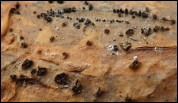 Owocniki na korze pnia, powalonej sosny.