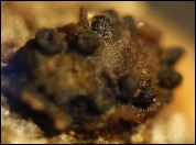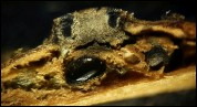 Owocniki na martwych gałęziach dziko rosnącej jabłoni, na skraju lasu.