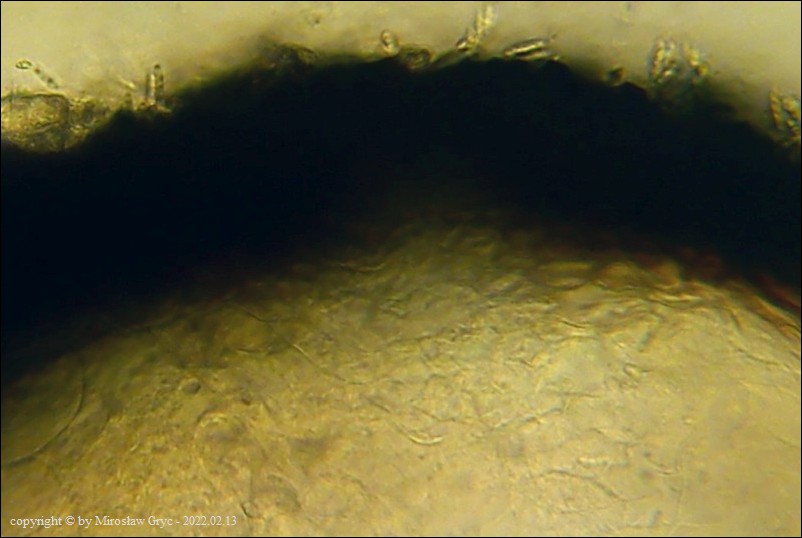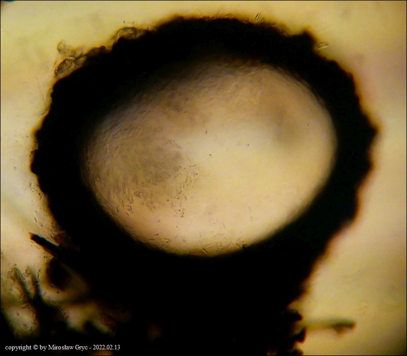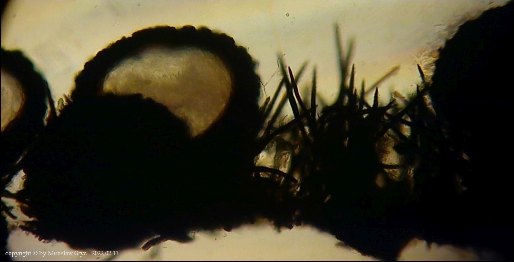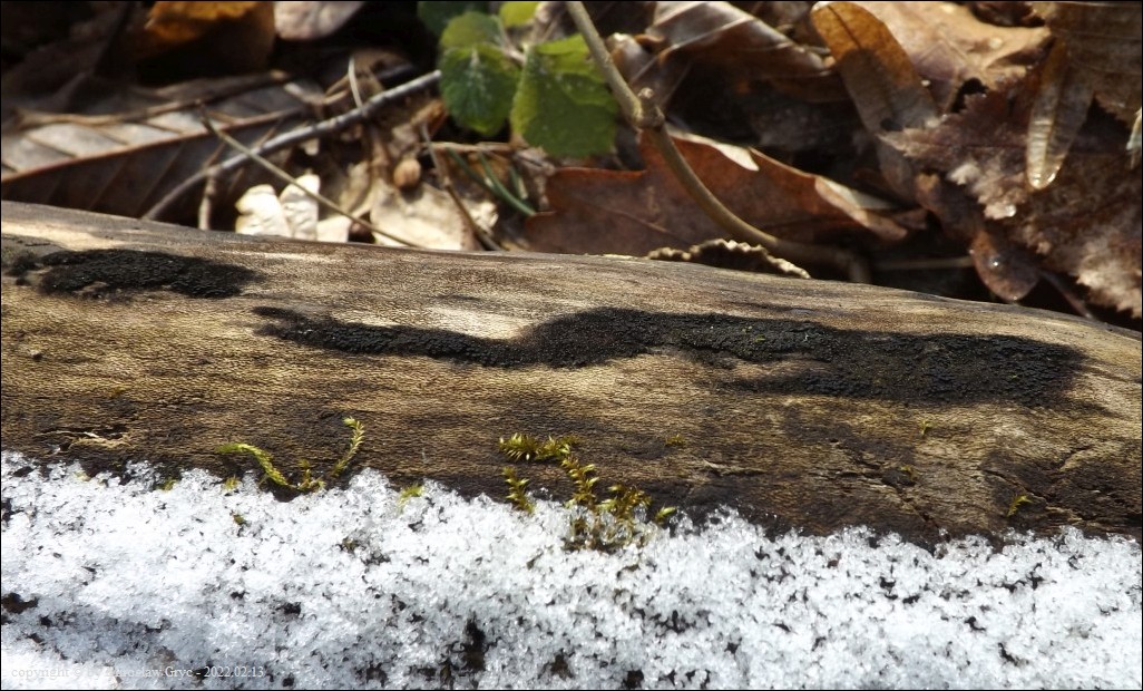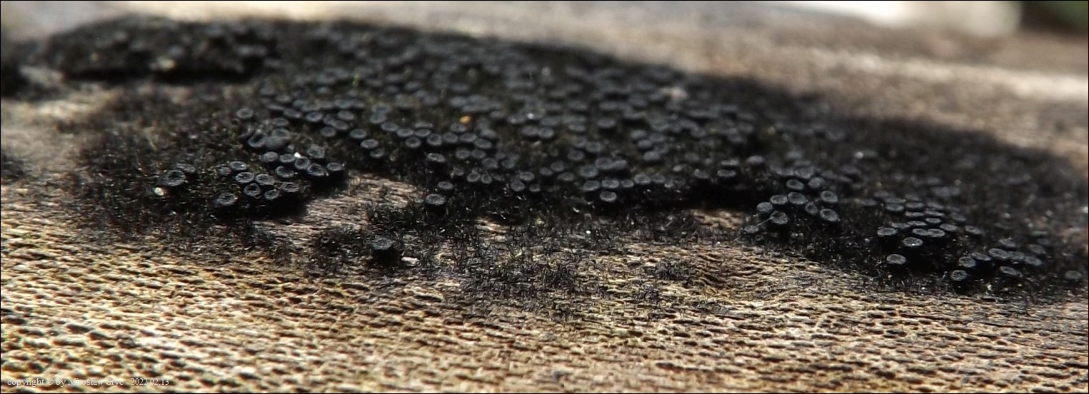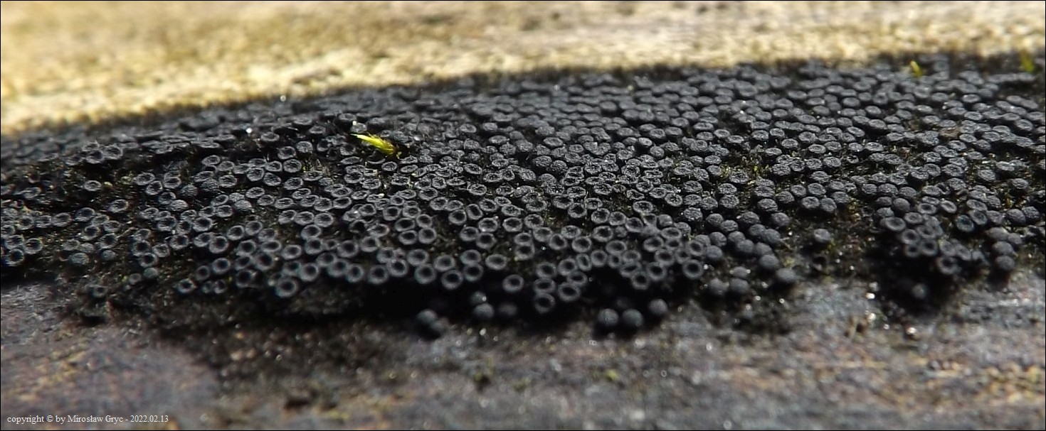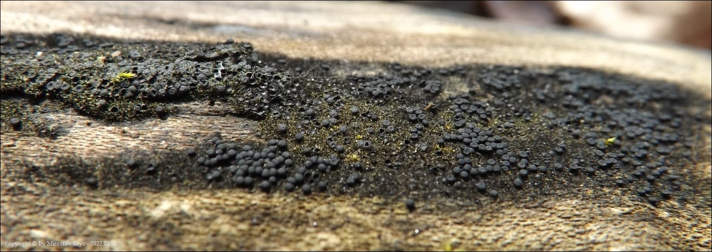 Substrat: Owocniki na okorowanym konarze liściastego (gatunek drzewa nieznany).