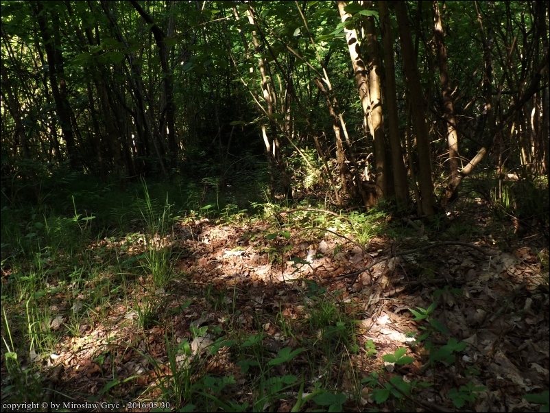 Substrat: Fragment gałęzi zagrzebany w ściółce.