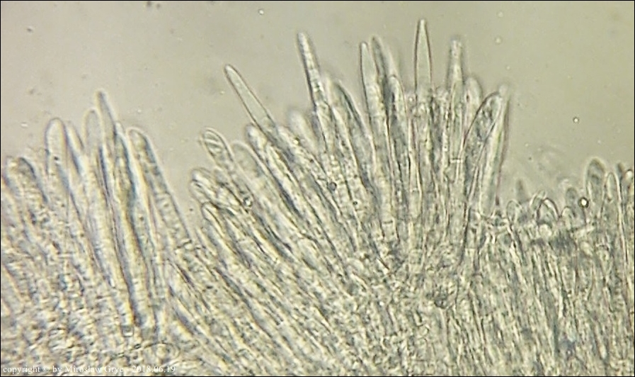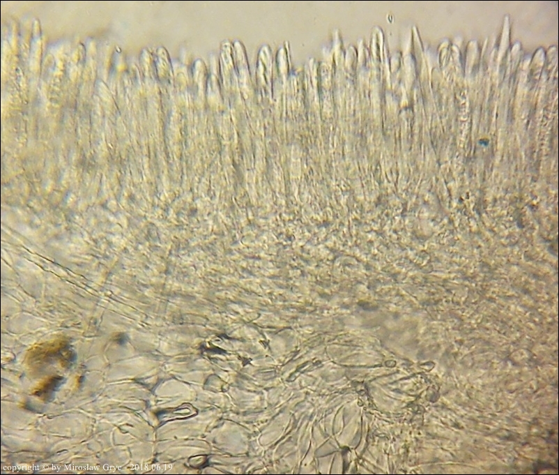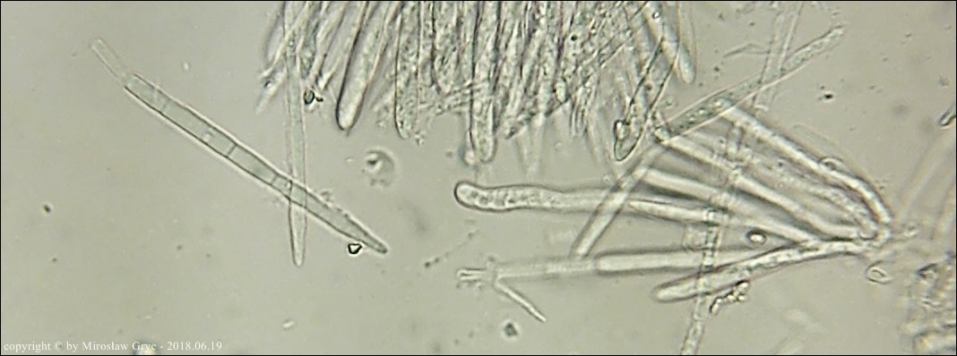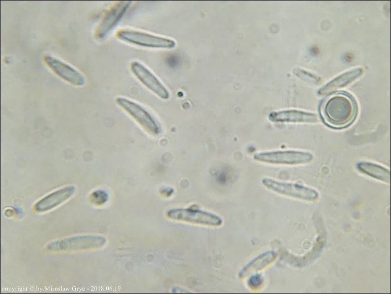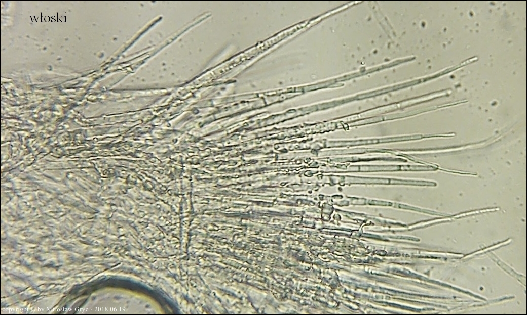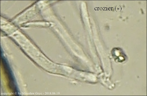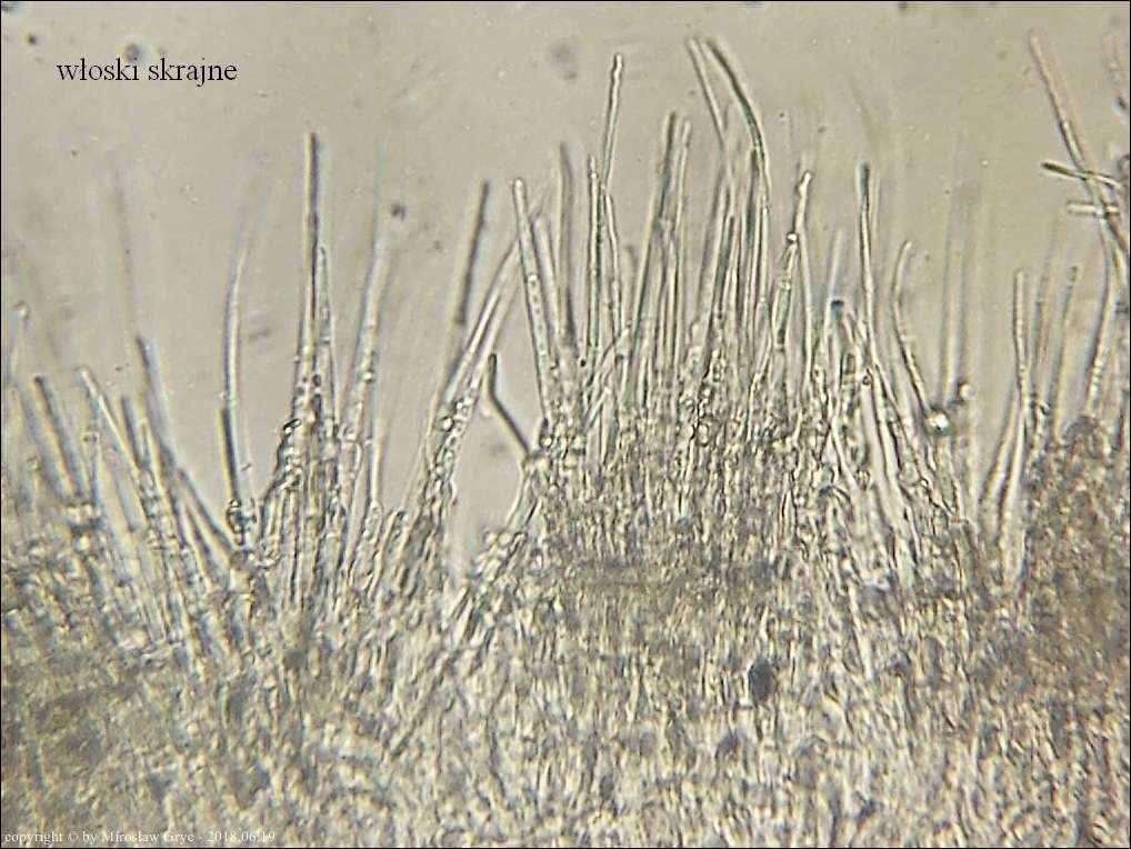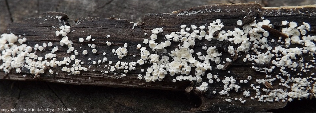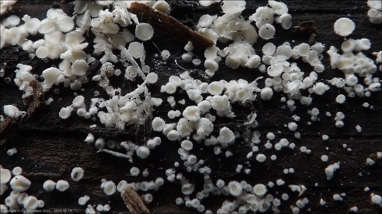 Substrat: Owocniki na dolnej stronie leżącego na wilgotnej ziemi fragmentu pnia, prawdopodobnie olszy (Alnus sp.).