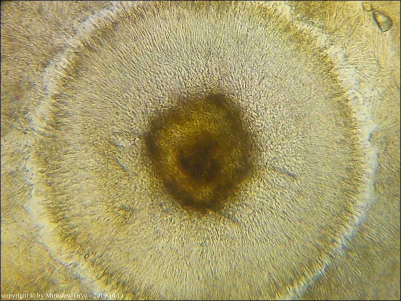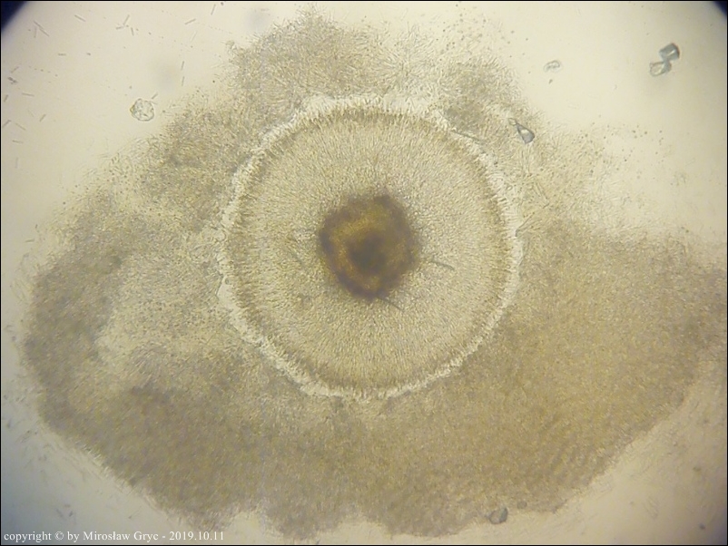 Można podejrzewać, że jej systematyka jak na tę chwilę jest dość sporna? H-O Baral tymczasowo umieścił ją w rodzaju Calycina.Niżej prezentowana kolekcja niestety ale była niedojrzała. Zarodniki nie występowały.