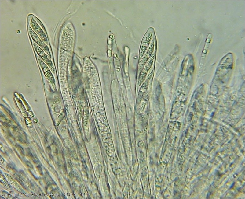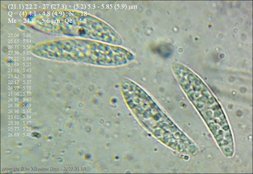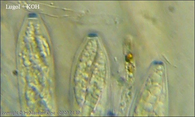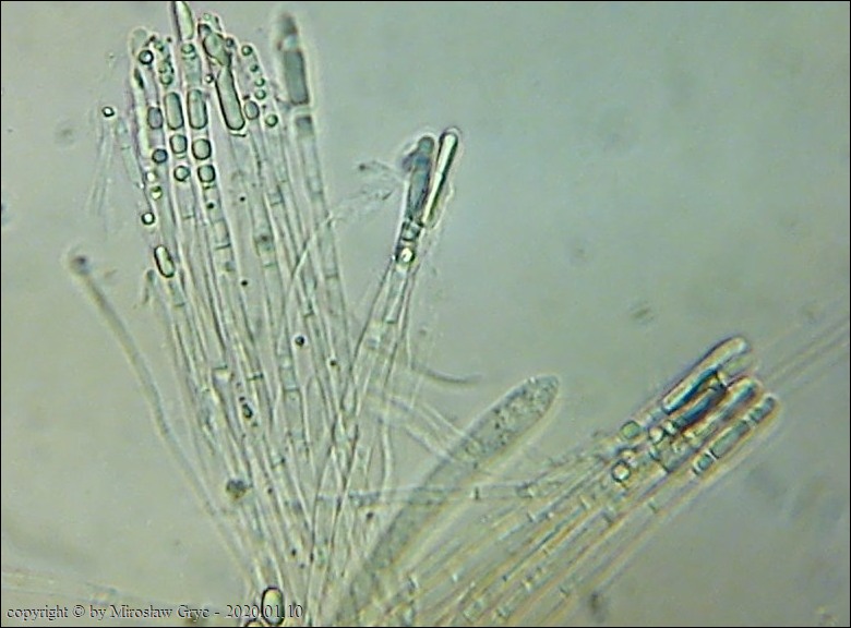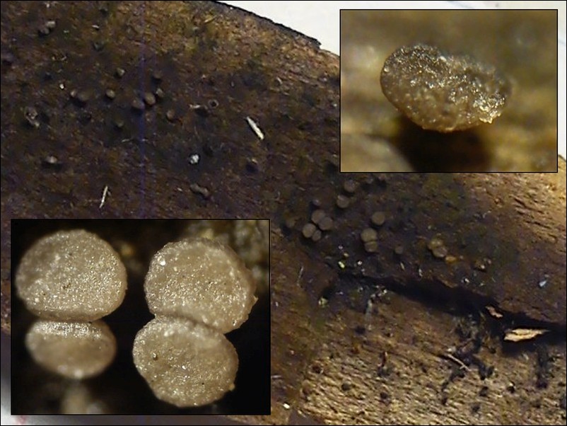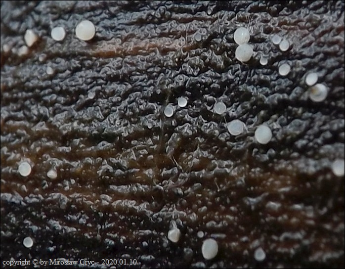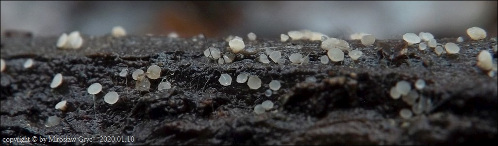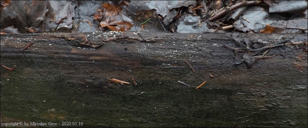 Substrat: Owocniki na szczapach popekanej i powalonej topoli (Populus sp.), leżącej na ziemi.